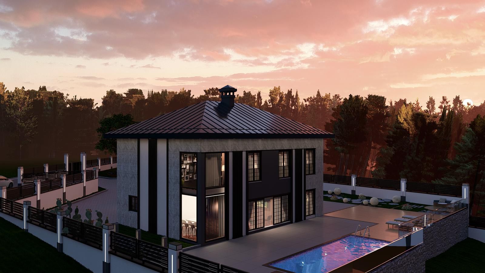 • Arka Cephe tamamen Orman ve Ormana bakan sonsuzluk havuzu mevcut. Arsanın içinden Ormana giriş mevcut.